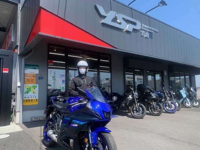 数か月前にYZF-R3をご購入いただきました、I様。YZF-R3も継続してお乗りになり、YZF-R7もご購入下さいました。以前の契約時には気付きませんでしたが、お歳を伺ってびっくり!